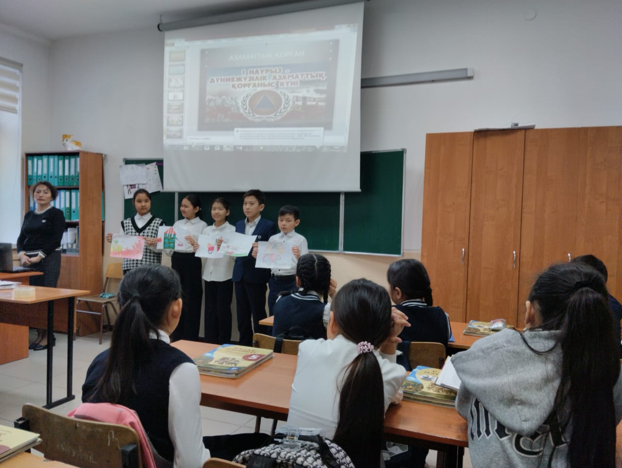 1 наурыз – Дүниежүзілік Азаматтық қорғаныс күніне орай сынып сағаттары өтілді.