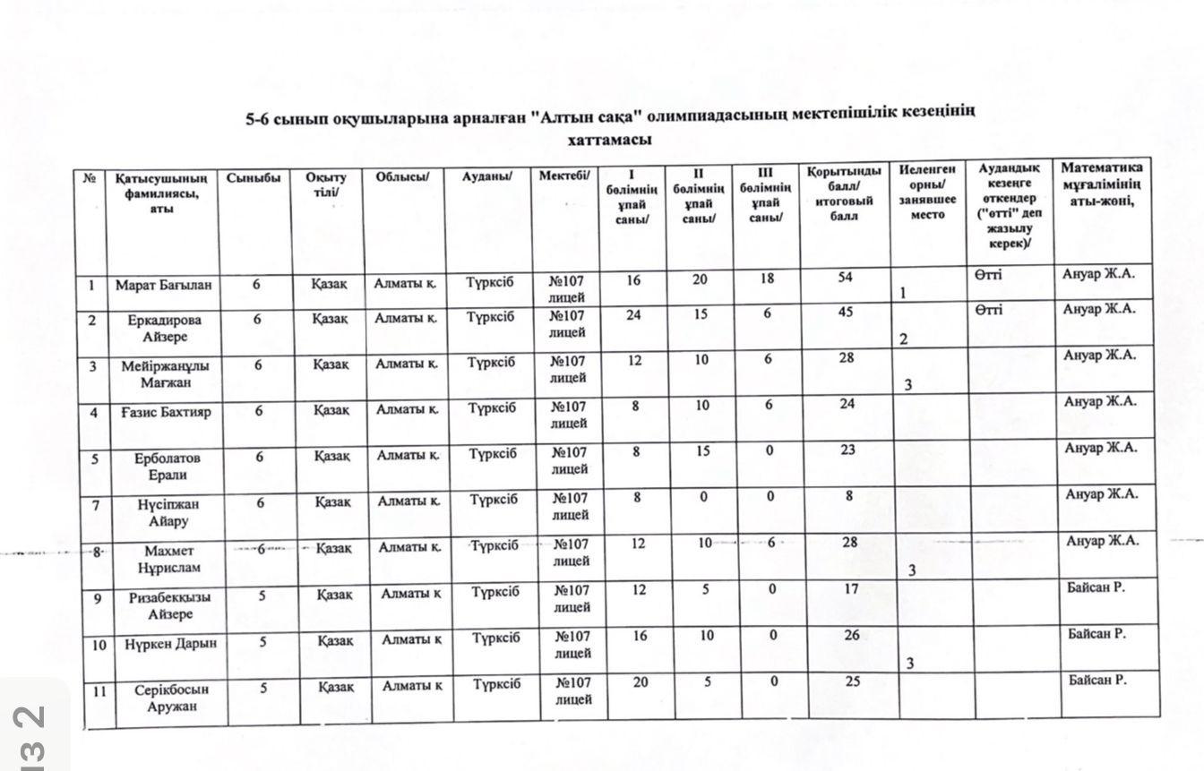 01 октябрь 2024 0 1 2 3 4 5 5-6 сыныптар арасында өткен "Алтын сақа" олимпиадасының мектепшілік кезеңінің хаттамасы