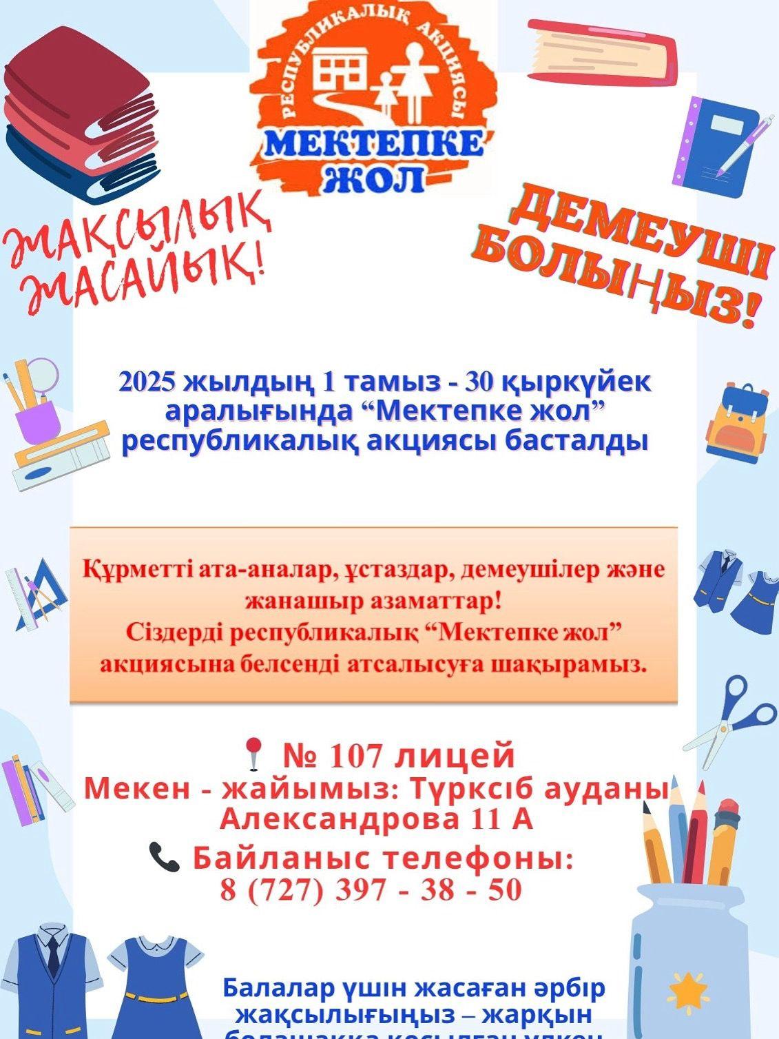 Тамыздың бірінен басталған дәстүрлі республикалық "Мектепке жол" акциясы қыркүйектің 30-на дейін жалғасады!