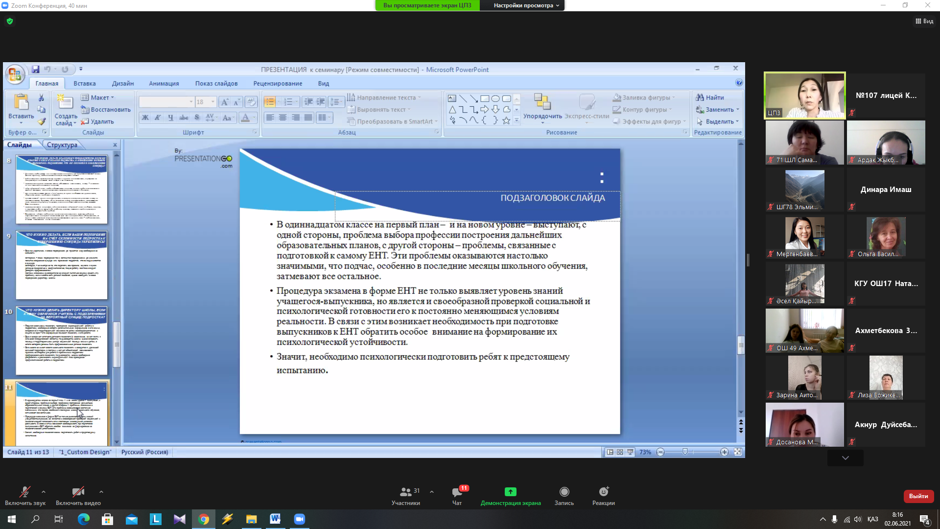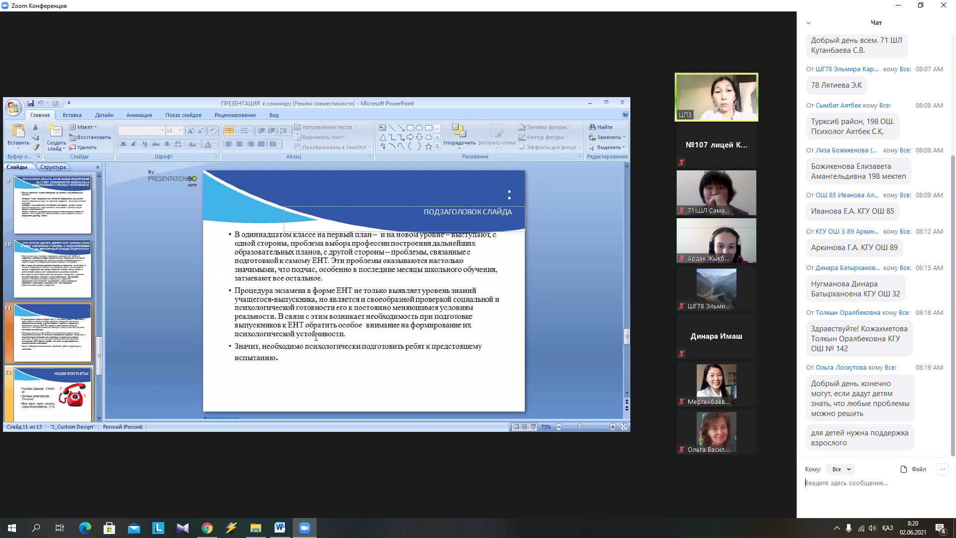 03.04.2021 жылы Алматы қалалық әдіскер орталығынан Сахова А.А. 10 сынып ата-аналар жиналысына қатысты.