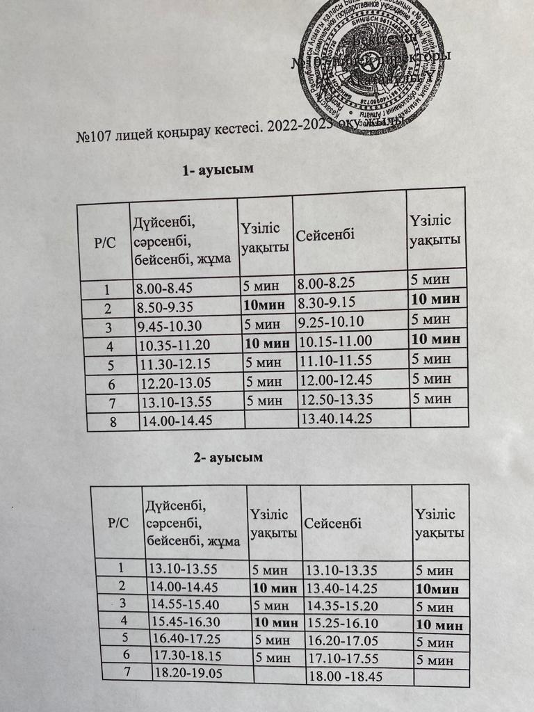 » Қоңырау кестесі.