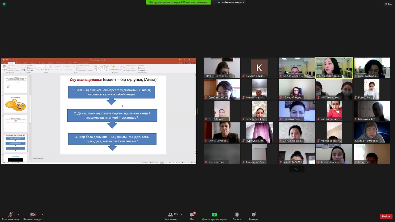 22 апрель 2021 0 1 2 3 4 5 22 сәуір Өзін-өзі тану мұғалімдері "Қашықтан оқыту жағдайында өзін-өзі тану пәнін оқытуды ұйымдастыру"-атты қалалық семинарға қатысты.